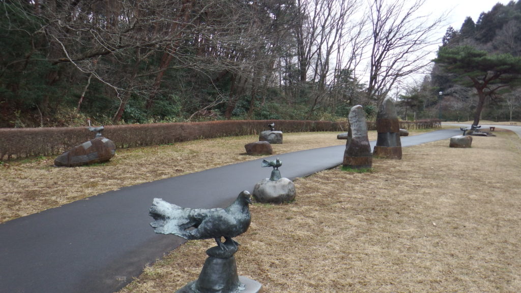 多くの鳩がいる。いつ集まり、飛び去るのか。